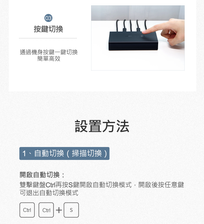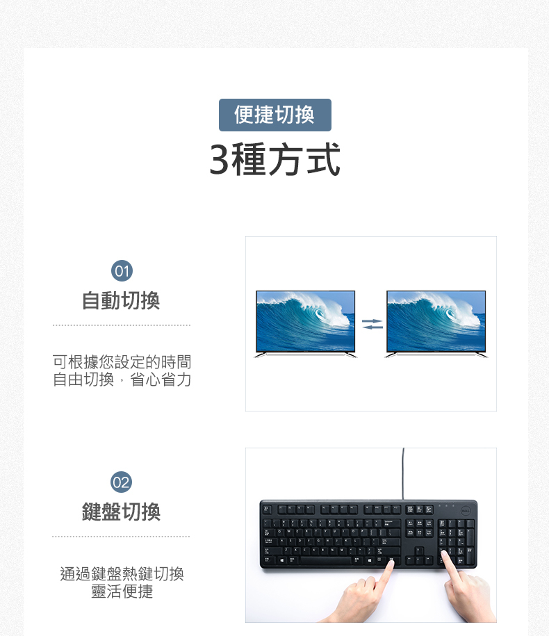 – 3種切換方式,即插即用