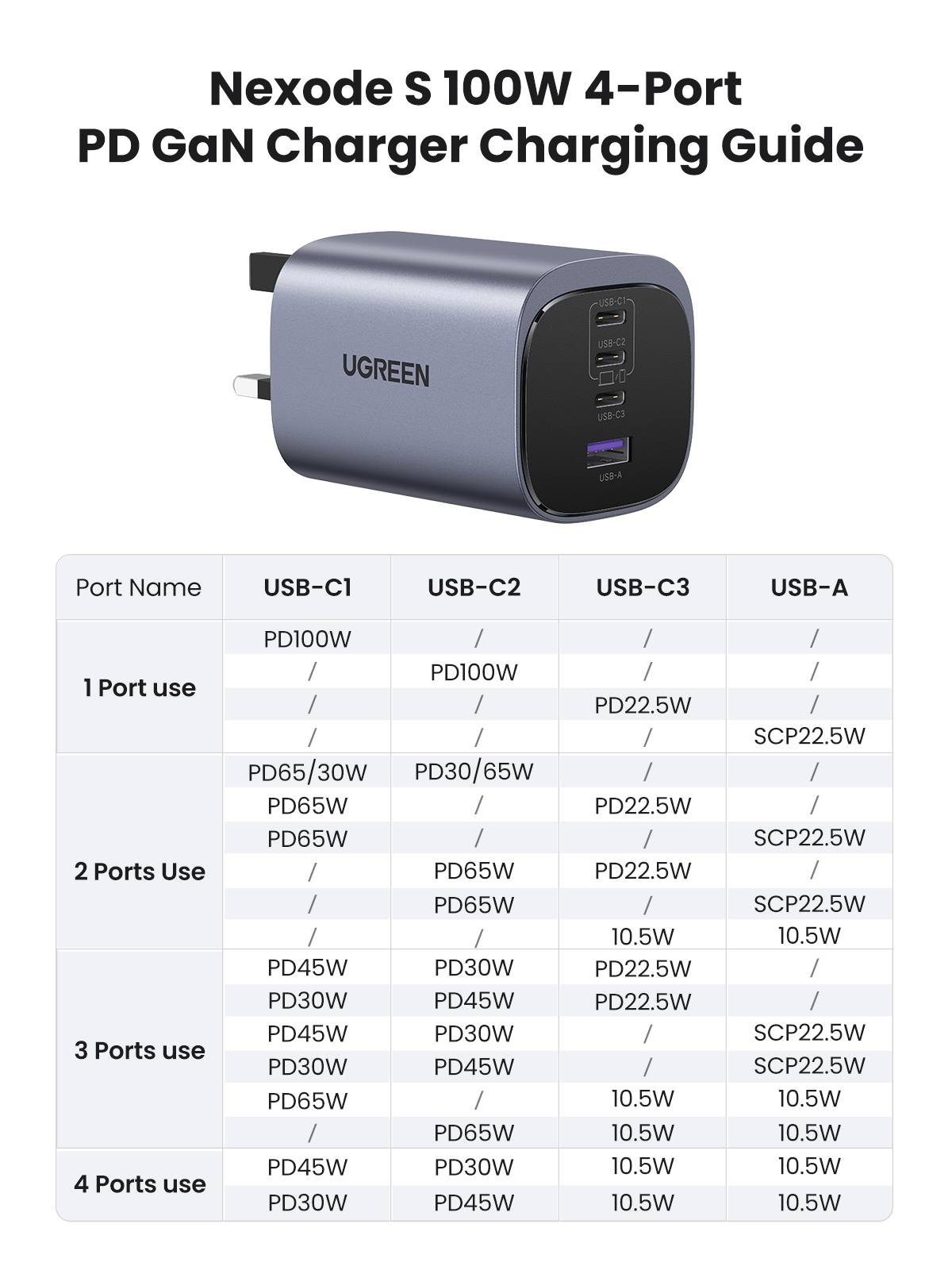 Ugreen Nexode S 100W 3C1A 4-Port GaN 快速充電器_X565-45226