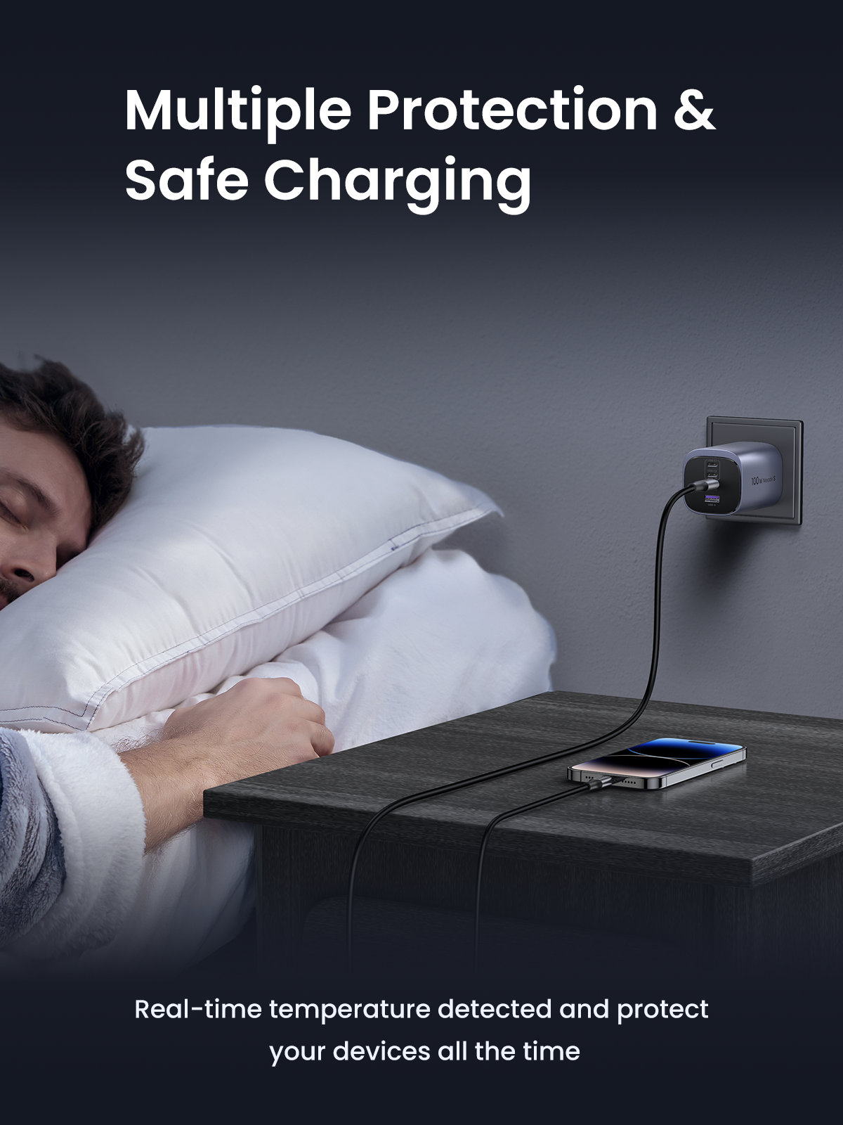- USB‑C3 / USB‑A 各約 22.5 W,相容主流 PD/QC/AFC/SCP
